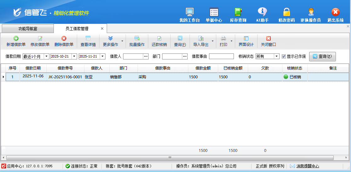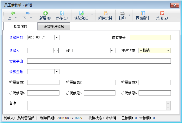 ????點擊“打印”可以把當(dāng)前保存的借款單打印出來。