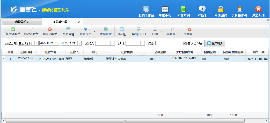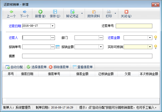 注:還款單管理可以增加費用報銷單來進(jìn)行統(tǒng)一管理。