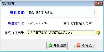 新建:新建賬套時(shí),可以設(shè)置賬套名稱、文件名以及賬套的存放路徑。賬套文件名不支持漢字,請(qǐng)輸入字母或數(shù)字,并盡量不要使用特殊符號(hào)。賬套存放目錄我們建議使用默認(rèn)的目錄即程序所在目錄下的Data子目錄,方便后續(xù)管理和使用。