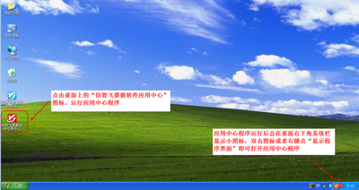 ????運行信管飛RMS應用中心并打開信管飛應用中心程序界面,主機電腦上軟件安裝后會在桌面上自動創建“信管飛RMS應用中心(紅色圖標)”及“信管飛RMS即客戶端(藍色圖標)”的快捷方式,點擊“信管飛RMS應用中心(紅色圖標)”即可運行信管飛RMS,如下圖所示。