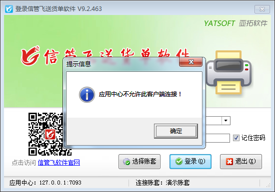 ????點擊“確定”指定更新程序后,點擊客戶端電腦登錄軟件,登錄時會提示“客戶端與應用中心版本號不一致,請升級更新后再登錄”,我們點擊“確定”按鈕,如下圖所示: