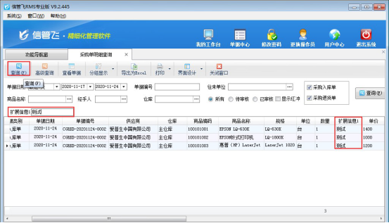 ????信管飛RMS軟件、信管飛倉(cāng)庫(kù)管理軟件、信管飛送貨單軟件等支持在采購(gòu)單、銷售單匯總表(送貨單匯總對(duì)賬單)、采購(gòu)單、銷售單明細(xì)查詢(送貨明細(xì)對(duì)賬單)、采購(gòu)訂單、銷售訂單明細(xì)表(訂單明細(xì)查詢)中設(shè)置擴(kuò)展信息為查詢條件,可匯總單據(jù)明細(xì)或者單據(jù)主體項(xiàng)中擴(kuò)展信息內(nèi)容。