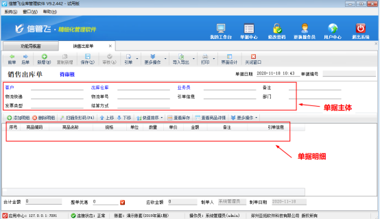 ????信管飛倉(cāng)庫(kù)管理軟件業(yè)務(wù)單據(jù)的界面分為單據(jù)主體及單據(jù)明細(xì)兩部分,如圖1所示,單據(jù)默認(rèn)值功能是對(duì)單據(jù)主體的部分?jǐn)?shù)據(jù)項(xiàng)進(jìn)行設(shè)置默認(rèn)值,業(yè)務(wù)單據(jù)設(shè)置默認(rèn)值后,每次新增單據(jù)時(shí)會(huì)顯示已設(shè)置的數(shù)據(jù)項(xiàng)默認(rèn)值。
