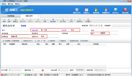 ????信管飛RMS、信管飛倉(cāng)庫(kù)管理軟件中采購(gòu)單、銷售單等單據(jù)審核后,如果發(fā)現(xiàn)單據(jù)錄入的數(shù)據(jù)有問(wèn)題,可以點(diǎn)工具欄中的“反審修改”按鈕,可以對(duì)已審核的單據(jù)進(jìn)行修改,修改后直接保存即可生效,對(duì)于已審核單據(jù)的客戶名稱、倉(cāng)庫(kù)名稱系統(tǒng)不支持直接反審修改。部分用戶有時(shí)單據(jù)審核后發(fā)現(xiàn)倉(cāng)庫(kù)選擇錯(cuò)了,單據(jù)明細(xì)內(nèi)容比較多,從新開(kāi)單又比較耗時(shí),此時(shí)該如何處理呢?下面以信管飛RMS專業(yè)版的銷售出庫(kù)單為例,介紹一下快捷的解決方法。