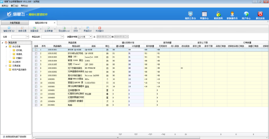 ????信管飛倉(cāng)庫(kù)管理軟件支持由智能采購(gòu)計(jì)劃生成采購(gòu)計(jì)劃單。智能采購(gòu)計(jì)劃可根據(jù)當(dāng)前庫(kù)存情況,并可結(jié)合庫(kù)存上下限、同期銷售量、銷售訂單數(shù)量、待審核數(shù)量等條件進(jìn)行組合運(yùn)算,從而給出建議的商品采購(gòu)量。可以把建議結(jié)果生成為采購(gòu)訂單。智能采購(gòu)計(jì)劃具體操作步驟如下: