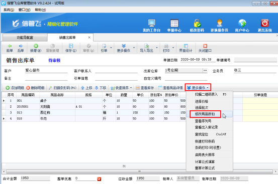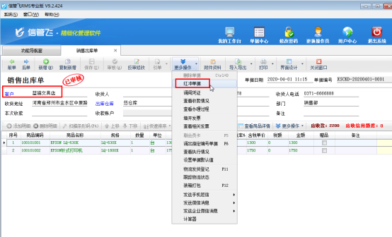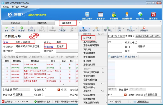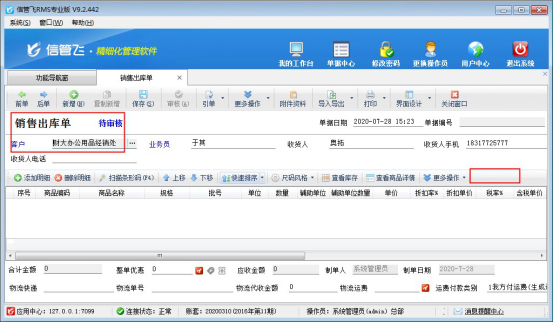 ????信管飛RMS、信管飛倉(cāng)庫(kù)管理軟件中采購(gòu)單、銷售單等單據(jù)審核后,如果發(fā)現(xiàn)單據(jù)錄入的數(shù)據(jù)有問(wèn)題,可以點(diǎn)工具欄中的“反審修改”按鈕,可以對(duì)已審核的單據(jù)進(jìn)行修改,修改后直接保存即可生效,對(duì)于已審核單據(jù)的客戶名稱、倉(cāng)庫(kù)名稱系統(tǒng)不支持直接反審修改。部分用戶有時(shí)單據(jù)審核后發(fā)現(xiàn)客戶名稱錄錯(cuò)了,單據(jù)明細(xì)內(nèi)容比較多,從新開(kāi)單又比較耗時(shí),此時(shí)該如何處理呢?下面以信管飛RMS專業(yè)版的銷售出庫(kù)單為例,介紹一下快捷的解決方法。