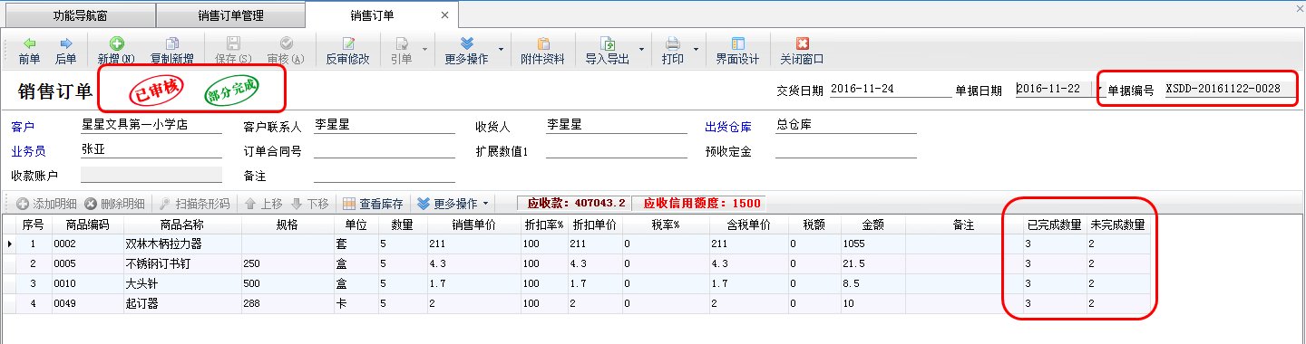 ????銷售單列表中批量審核功能和采購(gòu)單列表一致,不再贅述。