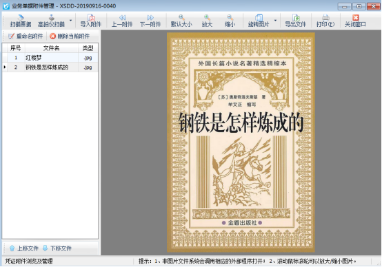 ????新增一個(gè)銷售出庫(kù)單,如圖1所示,單據(jù)保存后,點(diǎn)擊工具欄中的“附件資料”按鈕,可以進(jìn)入“附件資料管理”界面,如圖2所示,可掃描或?qū)肱c票據(jù)相關(guān)的電子文件。