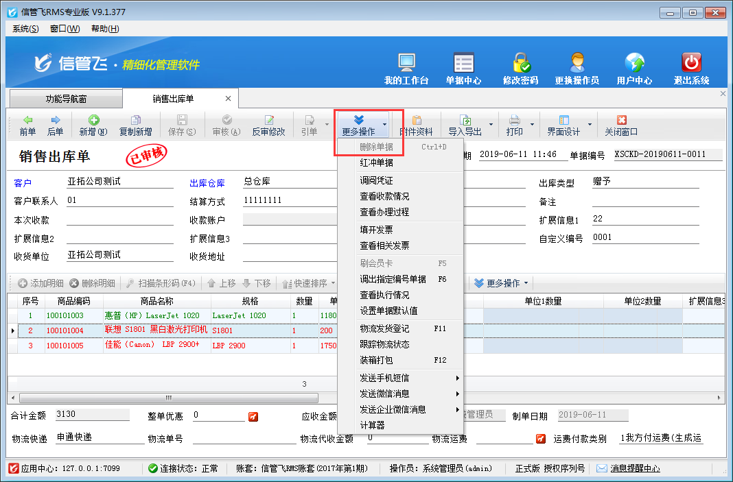 ????信管飛RMS(進(jìn)銷存管理軟件)、信管飛倉(cāng)庫(kù)管理軟件中業(yè)務(wù)單據(jù)已審核后默認(rèn)是不允許刪除的,如下圖所示,刪除按鈕為灰色的,不可操作,那么如果單據(jù)審核后發(fā)現(xiàn)此單做錯(cuò)了,需要?jiǎng)h除,如何操作呢?本篇文章詳細(xì)介紹一下倉(cāng)庫(kù)管理軟件內(nèi)如何刪除已審核的業(yè)務(wù)單據(jù)?