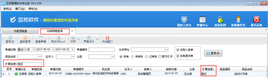 ????采購(gòu)單明細(xì)查詢中的擴(kuò)展信息項(xiàng)是調(diào)用采購(gòu)單界面的單據(jù)明細(xì)中的擴(kuò)展信息。如需要查詢單據(jù)主體中調(diào)用的擴(kuò)展信息項(xiàng),請(qǐng)?jiān)凇安少?gòu)單匯總表”中設(shè)置查詢。