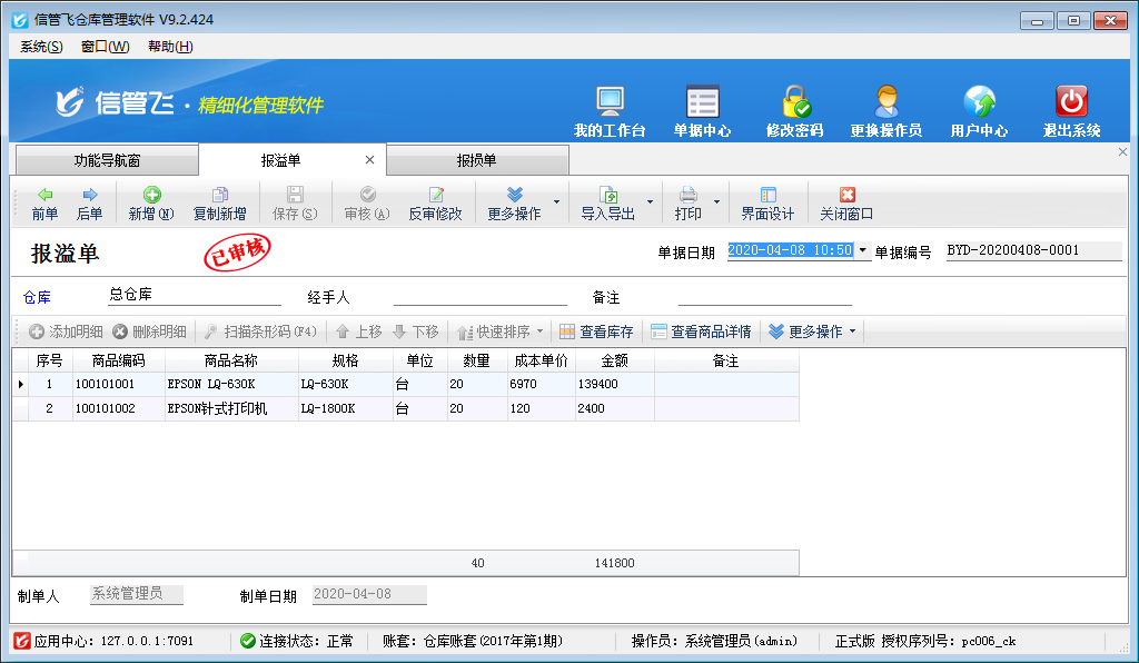 ????亞拓管理軟件(專業(yè)版、標(biāo)準(zhǔn)版、星光版)、紅管家倉(cāng)庫(kù)管理軟件(專業(yè)版、標(biāo)準(zhǔn)版)都支持使用報(bào)溢單、報(bào)損單進(jìn)行數(shù)量調(diào)整,下面我們以亞拓管理軟件專業(yè)版為例來(lái)演示一下具體的操作步驟。
