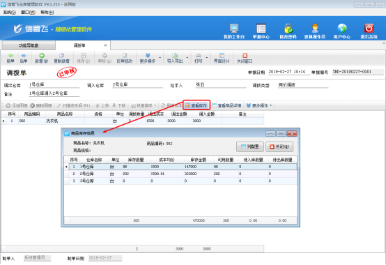 ????復(fù)制新增的單據(jù),可以重新選擇倉(cāng)庫(kù)信息,可選擇正確的倉(cāng)庫(kù)后,重新保存審核單據(jù),如下圖所示: