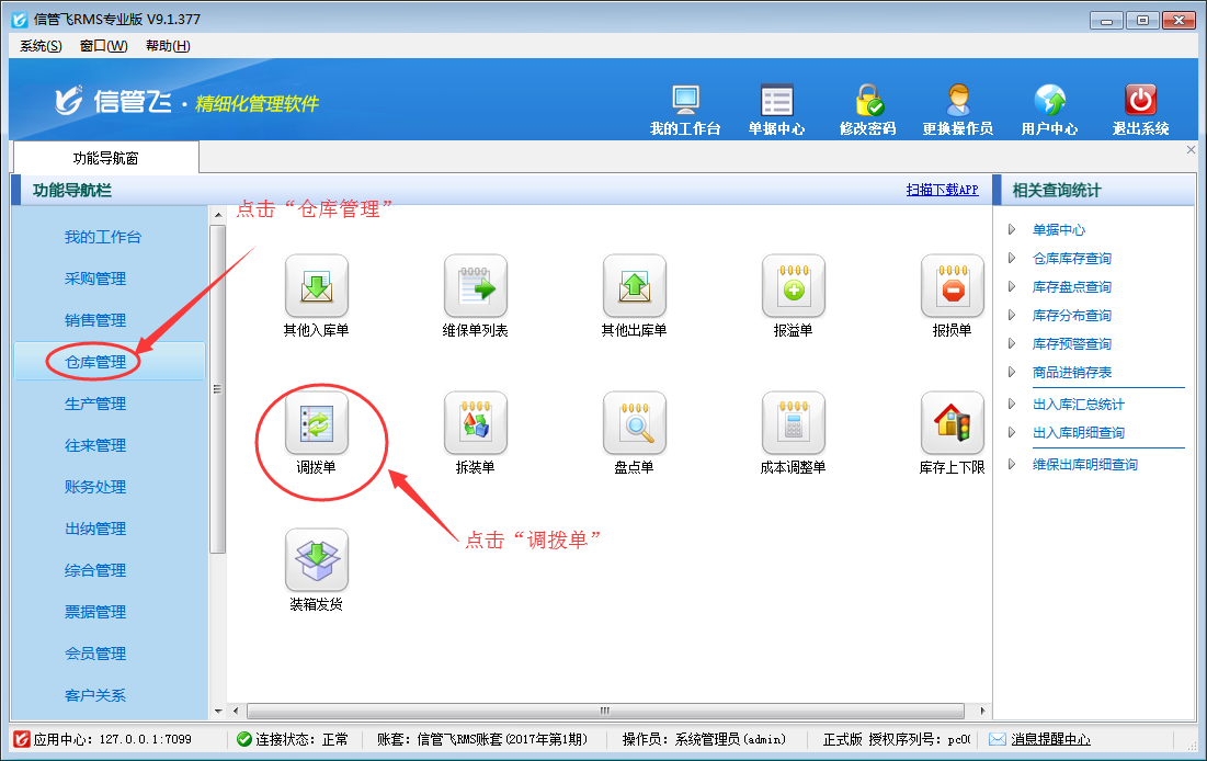 ????對(duì)于存在多個(gè)倉(cāng)庫(kù)的企業(yè)來(lái)說(shuō),對(duì)不同倉(cāng)庫(kù)的商品直接進(jìn)行調(diào)撥,是一種很常見(jiàn)的業(yè)務(wù)。信管飛RMS(進(jìn)銷存軟件)和信管飛倉(cāng)庫(kù)管理軟件都支持分倉(cāng)庫(kù)管理商品,其中信管飛RMS標(biāo)準(zhǔn)版和專業(yè)版、信管飛倉(cāng)庫(kù)管理軟件都支持倉(cāng)庫(kù)調(diào)撥功能,可以方便的進(jìn)行倉(cāng)庫(kù)之間的貨品轉(zhuǎn)移。