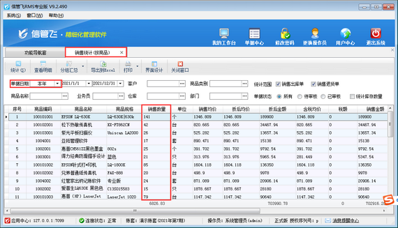# 6.2.74 信管飛RMS軟件如何查詢商品銷售數(shù)量?