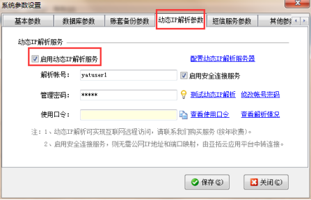 ????此連接需要購(gòu)買動(dòng)態(tài)IP解析服務(wù),在電腦端應(yīng)用中心啟用動(dòng)態(tài)IP解析服務(wù)后,手機(jī)APP登錄界面點(diǎn)擊選擇賬套,勾選上啟用動(dòng)態(tài)IP解析,輸入解析賬號(hào)和使用口令,點(diǎn)擊“下一步”選擇賬套登錄,如下圖所示: