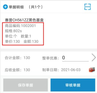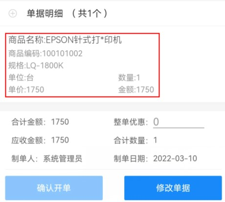 ????電腦端界面設(shè)計(jì)設(shè)置完成后,登錄手機(jī)APP,重新打開單據(jù),可看到單據(jù)明細(xì)上已顯示“折扣率和折扣單價(jià)”,如下圖所示:
