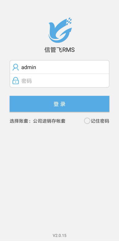 ????設(shè)置完成后,信管飛RMS的APP登錄軟件后退出,再次打開登錄頁(yè)面,就不再顯示“演示試用”功能按鈕。如下圖所示: