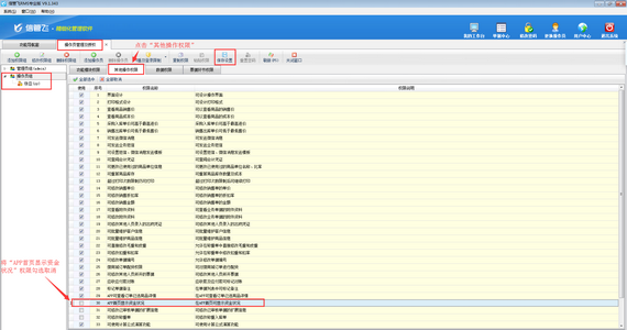 ????在功能導(dǎo)航窗點(diǎn)擊“系統(tǒng)管理”—》“操作員及授權(quán)”,進(jìn)入“操作員管理及授權(quán)”界面,選擇操作員賬號(hào),然后在“其他操作權(quán)限”界面將“APP首頁(yè)顯示資金狀況”權(quán)限勾選取消,然后保存權(quán)限設(shè)置,如下圖所示,設(shè)置操作員“張亞”APP首頁(yè)不可顯示資金狀況。