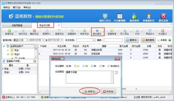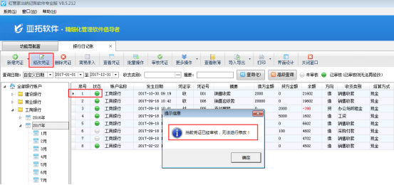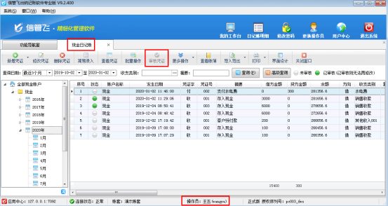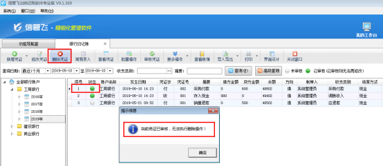 ????信管飛出納記賬軟件標準版和專業版在新增保存日記賬憑證后都可以直接審核憑證,憑證審核后,不允許直接刪除??蛻羧绻枰獎h除已審核的憑證,需要先反審憑證,再進行刪除。下面我們介紹一下在信管飛出納記賬軟件專業版中如何刪除已審核的日記賬憑證?