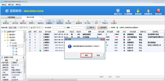 ????在銀行日記賬列表界面,如圖2所示,點擊“更多操作”——》“反審憑證”,系統彈出提示信息“您確定要反審當前憑證?”,點擊“確定”按鈕,如圖3所示。