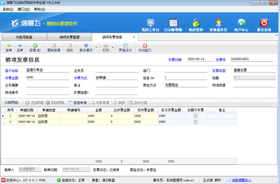 ????發(fā)票審核后系統(tǒng)即可自動(dòng)更新相關(guān)單據(jù)開(kāi)票狀態(tài),如下圖所示。