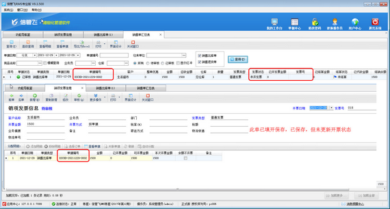 ????參數(shù)啟用后,可按單據(jù)填開(kāi)一張發(fā)票,保存后查看相關(guān)單據(jù)開(kāi)票狀態(tài),還是“未開(kāi)票”狀態(tài),如下圖所示。