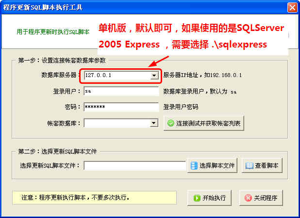 第二步、點擊“程序更新SQL腳本執行工具”,進入更新腳本窗口: