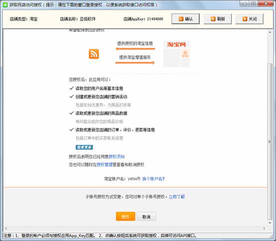 用申請淘寶API的店鋪淘寶帳戶登錄一下,然后點“授權”按鈕,