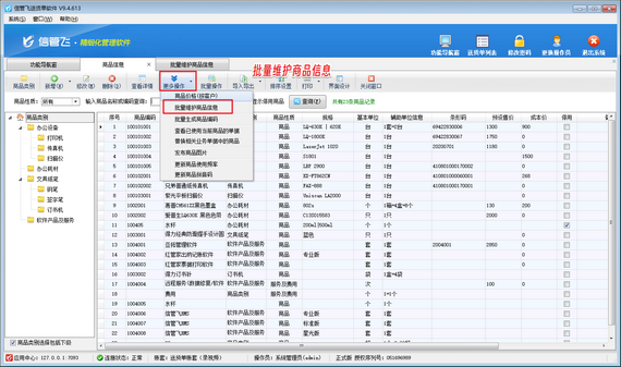 在實(shí)際操作中,面對(duì)大量需要停用的商品,逐一處理無疑會(huì)耗費(fèi)大量時(shí)間。為此,信管飛送貨單軟件提供了便捷的批量處理功能。用戶只需進(jìn)入“基礎(chǔ)資料”下的“商品信息”界面,點(diǎn)擊“更多操作”—》“批量維護(hù)商品信息”即可進(jìn)入批量維護(hù)商品信息界面。