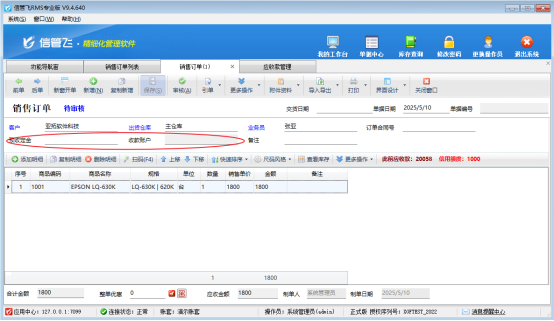 訂單中預收定金2000元,訂單應收金額1800元,開單不能保存。