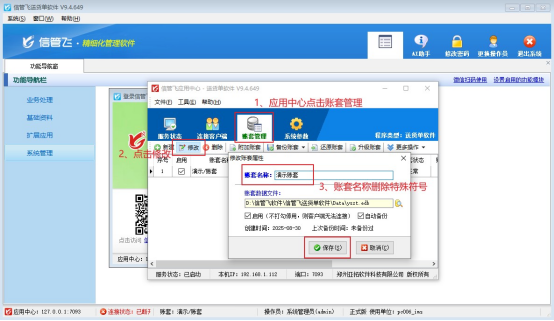經(jīng)檢查備份賬套失敗的原因是賬套名稱含有特殊字符“/”,處理方法:打開應(yīng)用中心(紅色圖標(biāo))-----賬套管理---修改,賬套名稱中符號/刪除,重新備份賬套即可。