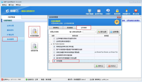 進(jìn)入「系統(tǒng)管理」→「系統(tǒng)參數(shù)配置」→「業(yè)務(wù)參數(shù)」,在“用戶定制功能參數(shù)”中勾選“XHGB定制”,保存即可。