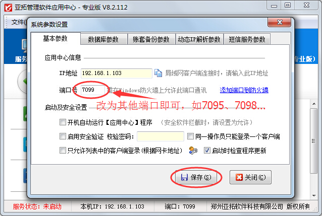 亞拓軟件開發(fā)的紅管家系列軟件和亞拓系列軟件,均采用先進(jìn)的多層技術(shù)體系架構(gòu),程序運行安全、穩(wěn)定、高效。客戶端程序與服務(wù)器端程序(即“亞拓軟件應(yīng)用中心”程序)進(jìn)行通訊,需要設(shè)置通訊端口,其中紅管家軟件(V8.0版本以前需要開放兩個通訊端口,V8.0及以后版本僅需要一個通訊端口)、亞拓管理軟件和亞拓倉庫管理軟件僅需要一個通訊端口。以下以“亞拓管理軟件”為例說明如何配置通訊端口,
